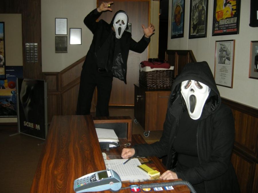 Teemailtana asiakkaita houkuteltiin pukeutumaan mustiin vaatteisiin ja viittaan. Matin-Tuvan kassalta jokainen sai oman Scream-naamarin ja euron alennusta lipunhinnasta.